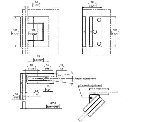 Charnière libre CASMA LATUS 4LV1S avec fixation verre/verre à 90°