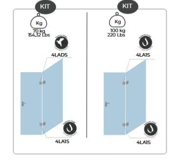 Avec 1 charnière hydraulique (SC-4LA1S) et une charnière libre (SC-4LADS) : Max. 70Kg