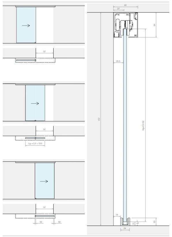 Kit complet pour porte coulissante LM PORTA PRO - 1 vantail - Fixation Plafond