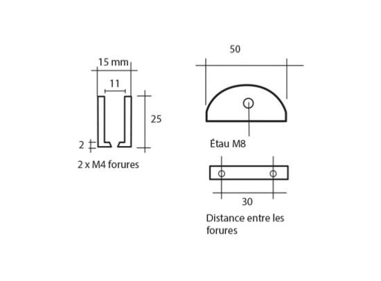 Prévu pour des vitrages épaisseurs 8mm à 10mm