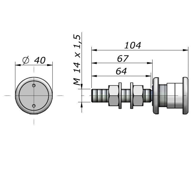 Vis articulée Lg 104mm - SV - Tete dépassante D40mm