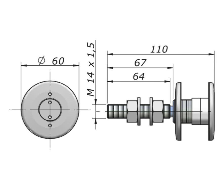 Vis avec deux flasques de 60mm. Fixation par l'avant