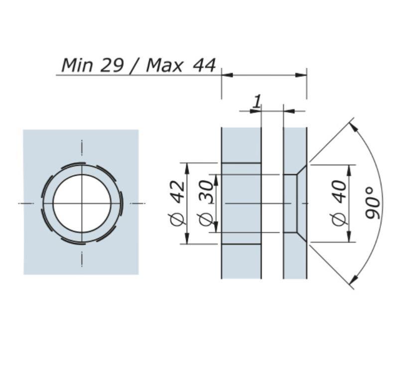 Prévu pour des épaisseurs de vitrage de 29mm à 44mm