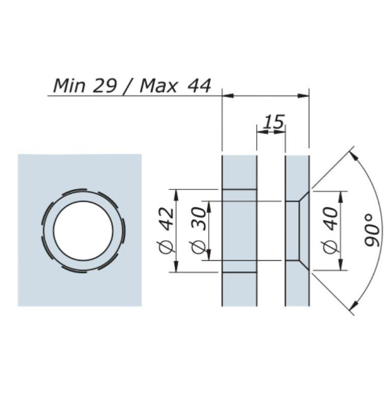 Prévu pour des épaisseurs de vitrage de 29mm à 44mm