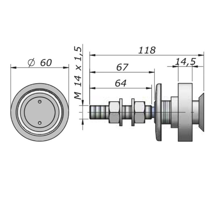 Vis articulée Lg 118mm à tête fraisée pour la fixation du double vitrage isolant avec un intercalaire de 15mm